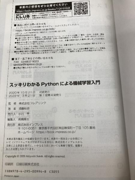 【※カバー無し】スッキリわかるPythonによる機械学習入門 (スッキリわかる入門シリーズ) インプレス 須藤秋良