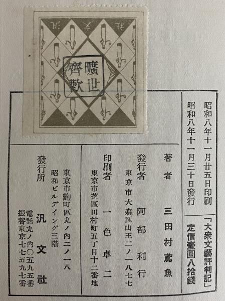 • 刊行年 1933