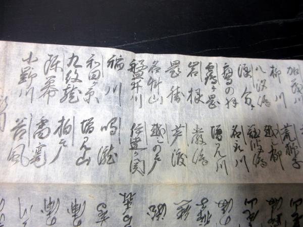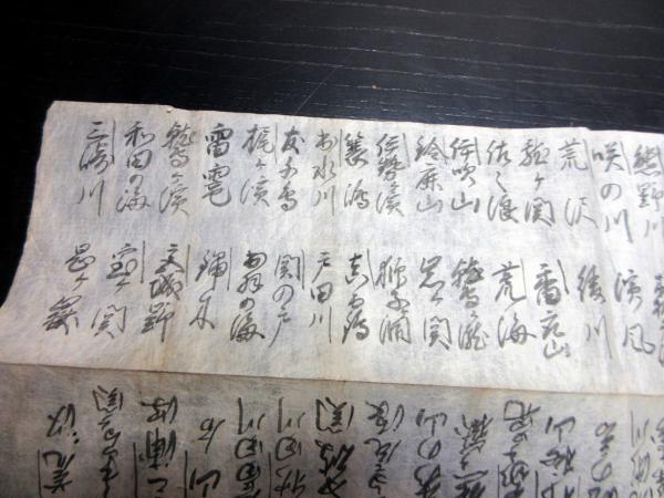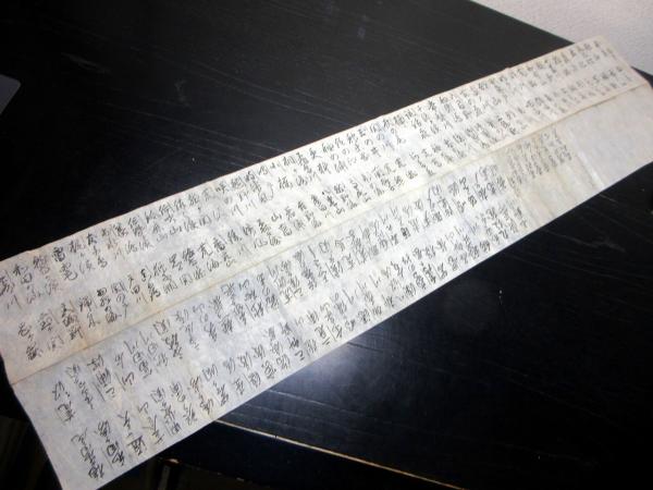 18cm×75cm。手書き。シミ、シワ、折れあり。状態は並上。