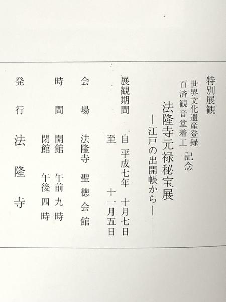 図録 法隆寺 元禄秘宝展 -江戸の出開帳から- 平成7年 法隆寺
