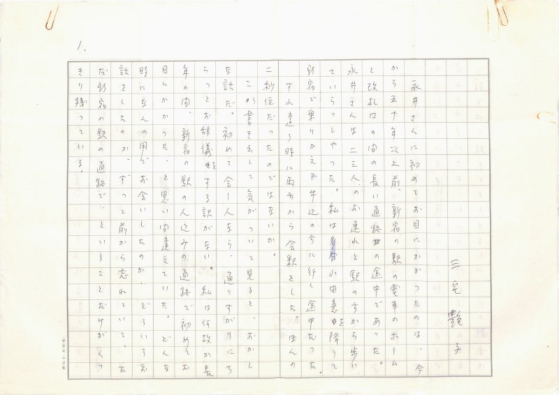 • 解説 『無題』 ペン書 400字詰原稿用紙7枚完 「三宅艶子」名義 「永井龍男全集9巻月報」(講談社・昭56)掲載。(種別)回想 #八木書店近代自筆物/1.草稿類 #95号近代文学特輯 95206089 ※自筆物につきましては、毎月25日前後に新蒐品を追加しております。PDF形式で御覧になりたい方は https://company.books-yagi.co.jp/archives/news/10928 を参照ください。