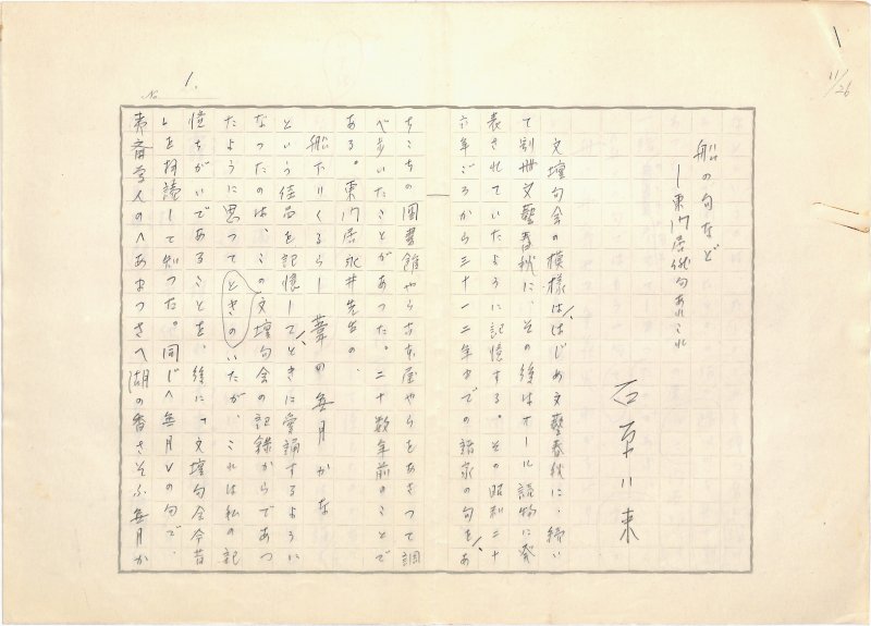 • 解説 『船の句など』―東門居俳句あれこれ 鉛筆書 400字詰原稿用紙5枚完 「永井龍男全集11巻月報」(講談社・昭57)掲載。(種別)回想 #八木書店近代自筆物/1.草稿類 #95号近代文学特輯 95605689 ※自筆物につきましては、毎月25日前後に新蒐品を追加しております。PDF形式で御覧になりたい方は https://company.books-yagi.co.jp/archives/news/10928 を参照ください。