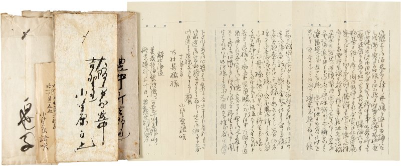 • 解説 大村呉楼宛 毛筆ペン書 封筒付 大9~13 近況報告だが、主に歴史随筆についてのやりとり。「去る五日恙なく歸阪六日より勤務に服し居り候間御安神下され度実は北邊の視察をば早々に切り上げ九州より満鮮にも向ひ度豫て心得居り申候處陸羽本線に於ける後三年戦址東北沿線の前九年戦史の遺蹟案内面白く見学いたし候のみならず北海道と申す處中々以て興味鮮からざる處にて淹留興こさず長きを致し遂に御地に出発の日時を失ひ申候事今となりては反つて残念至極に存じ候」(大11・12・13門司宛)。(発信地)大阪市北区上福島 大阪市外豊中吉野通(受信地)門司市谷町 兵庫県武庫郡大社村 石橋荘園 #八木書店近代自筆物/2.書簡類 #95号近代文学特輯 95206327 ※自筆物につきましては、毎月25日前後に新蒐品を追加しております。PDF形式で御覧になりたい方は https://company.books-yagi.co.jp/archives/news/10928 を参照ください。