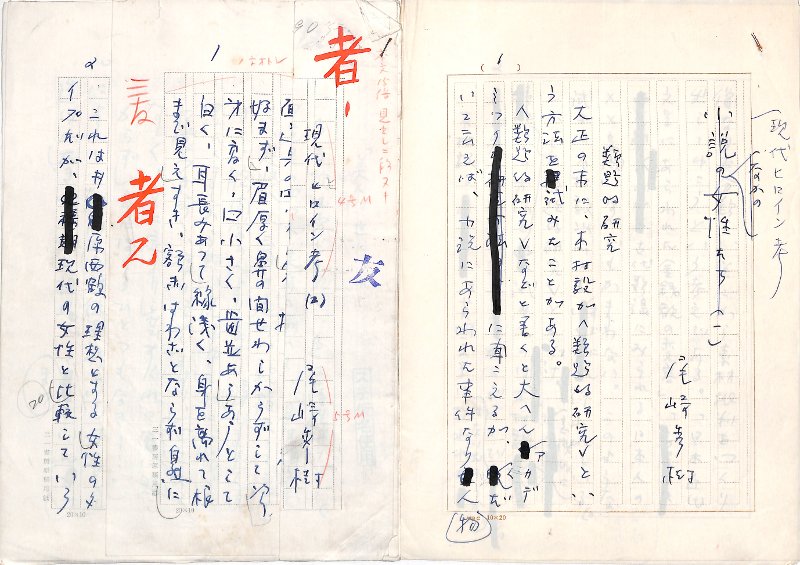 • 解説 『現代ヒロイン考』(一)~(八) ペン書 200字詰原稿用紙108枚 一部欠 裁断 「類題的研究」によるヒロイン考。(三)末尾欠、(六)全欠。水上勉、田村泰次郎らのヒロインについて。(種別)評論 #八木書店近代自筆物/1.草稿類 #95号近代文学特輯 95708195 ※自筆物につきましては、毎月25日前後に新蒐品を追加しております。PDF形式で御覧になりたい方は https://company.books-yagi.co.jp/archives/news/10928 を参照ください。