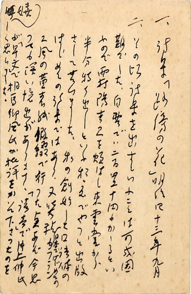• 解説 國民新聞社學藝部宛 ペン書 11行 大14・10・1(消印) 返信葉書 処女出版について。「一、詩集『路傍の花』明治四十三年九月 二、その頃詩集を出すといふことは可成困難でした。自費では二百四五十円もかゝるといふので西村勝吉を煩はし東雲堂から半分持ち出しといふ程度でやつと出版さして貰いました。私の創始した口語体のはじめての詩集ではあり、又装幀も日本ではじめてのフランス風の黄表紙假綴で行つた点なぞ今思つても深い憶出があります。『読売』で片上伸氏が『早文』で相馬御風氏が批評をかいて下さったのを嬉しく思いました」。(受信地)京橋區日吉町 #八木書店近代自筆物/3.葉書類 #95号近代文学特輯 95401168 ※自筆物につきましては、毎月25日前後に新蒐品を追加しております。PDF形式で御覧になりたい方は https://company.books-yagi.co.jp/archives/news/10928 を参照ください。