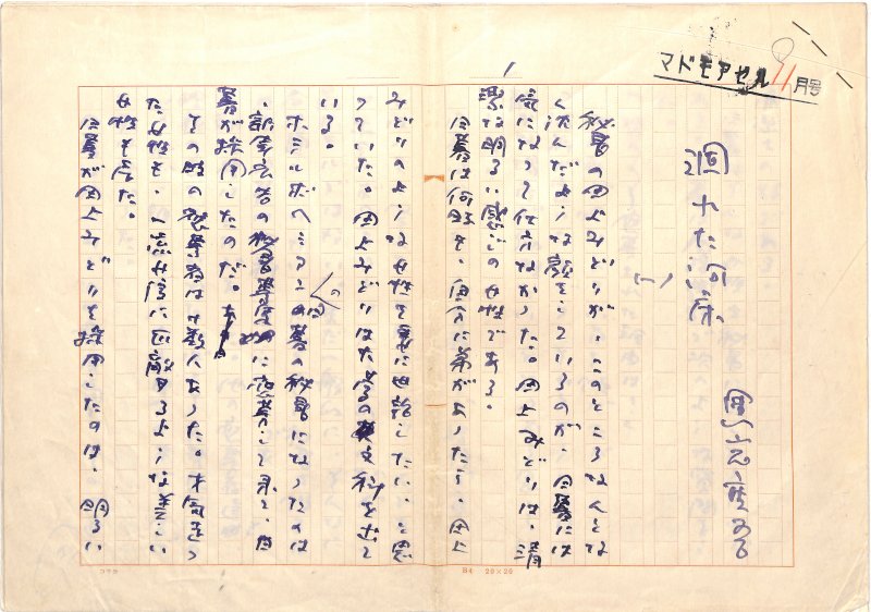 • 解説 『涸れた河原』(一)(二) ペン書 400字詰原稿用紙15枚未完 連載の冒頭部分か。「マドモアゼル」11月号掲載。 #八木書店近代自筆物/1.草稿類 #95号近代文学特輯 95402358 ※自筆物につきましては、毎月25日前後に新蒐品を追加しております。PDF形式で御覧になりたい方は https://company.books-yagi.co.jp/archives/news/10928 を参照ください。