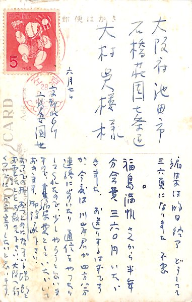 • 解説 大村呉樓宛 ペン書 13行 昭28・6・7(消印) 絵葉書 歌誌の編集報告。「編集は昨日終了。どうしても三六頁になりました。不悪」。(発信地)京都北白川(受信地)石橋荘園 #八木書店近代自筆物/3.葉書類 #95号近代文学特輯 95504007 ※自筆物につきましては、毎月25日前後に新蒐品を追加しております。PDF形式で御覧になりたい方は https://company.books-yagi.co.jp/archives/news/10928 を参照ください。