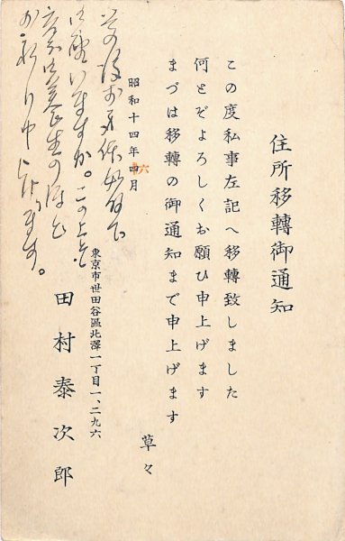 田村泰次郎葉書