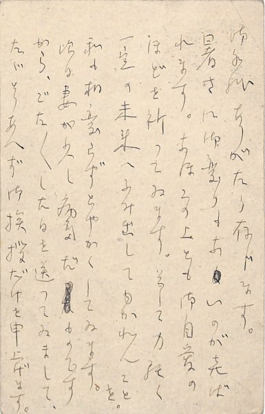 • 解説 竹内二郞宛 ペン書 9行 大8・8・19(消印) 教え子に対する手紙か。「暑さに御変りもないのが喜ばれます。なほこの上とも御自愛のほどを祈ってゐます。そして力強く一定の未来へふみ出してゆかれんことを」。(発信地)本郷千駄木(受信地)千駄ヶ谷 #八木書店近代自筆物/3.葉書類 #95号近代文学特輯 95211370 ※自筆物につきましては、毎月25日前後に新蒐品を追加しております。PDF形式で御覧になりたい方は https://company.books-yagi.co.jp/archives/news/10928 を参照ください。
