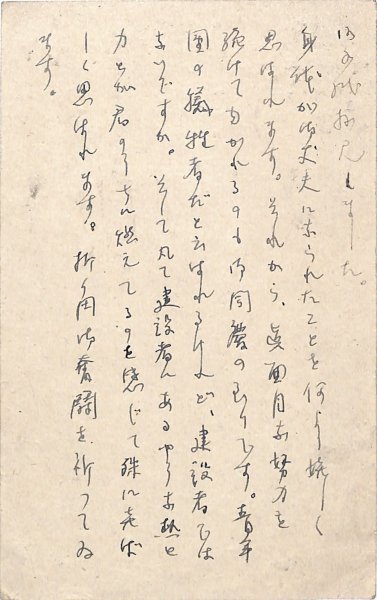• 解説 竹内二郞宛 ペン書 9行 消印不鮮明 大正期 おそらくは書生、あるいは学生への手紙。「身体が御丈夫になられたことを何より嬉しく思はれます。それから、眞面目な努力を続けてゆかれるのも御同慶の至りです。青年團の犠牲者だと云はれるけれど、建設者ではないですか。そして凡て建設者にあるやうな熱と力が君のうちに燃えてるのを感じて殊に喜ばしく思はれます」。(受信地)相州鎌倉町大佛通池田候別邸内 #八木書店近代自筆物/3.葉書類 #95号近代文学特輯 95301389 ※自筆物につきましては、毎月25日前後に新蒐品を追加しております。PDF形式で御覧になりたい方は https://company.books-yagi.co.jp/archives/news/10928 を参照ください。