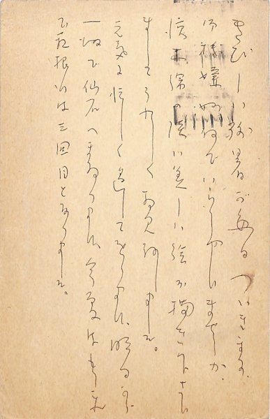 • 解説 山崎梅花宛 ペン書 7行 昭34・9・1(消印) 残暑見舞。「濱木綿の淡い美しい絵お描き下さいましてうれしく拝見致しました」。(発信地)鎌倉笹目(受信地)大田区桐里町 #八木書店近代自筆物/3.葉書類 #95号近代文学特輯 95508229 ※自筆物につきましては、毎月25日前後に新蒐品を追加しております。PDF形式で御覧になりたい方は https://company.books-yagi.co.jp/archives/news/10928 を参照ください。