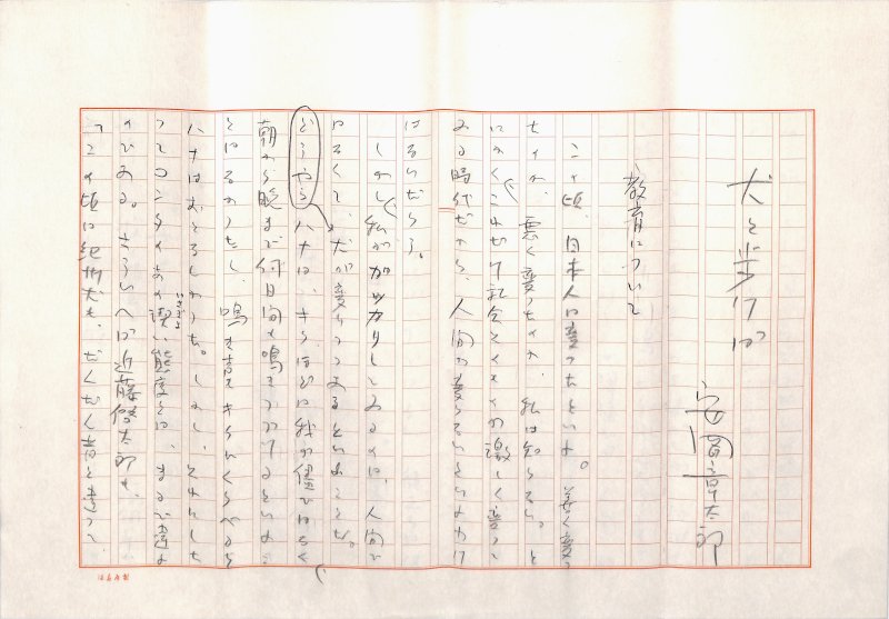 • 解説 『犬と歩けば』教育について 鉛筆 400字詰原稿用紙9枚完 「犬と歩けば」の一篇。ハナの夜鳴きについて。(種別)随筆 #八木書店近代自筆物/1.草稿類 #95号近代文学特輯 95105648 ※自筆物につきましては、毎月25日前後に新蒐品を追加しております。PDF形式で御覧になりたい方は https://company.books-yagi.co.jp/archives/news/10928 を参照ください。
