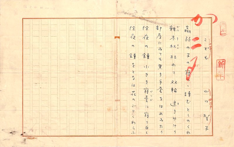 • 解説 『こども』 ペン書 400字詰原稿用紙1枚完 「羸弱の子の寝つゝ読むとしのくれ」等5句。(種別)俳句 #八木書店近代自筆物/1.草稿類 #95号近代文学特輯 95204017 ※自筆物につきましては、毎月25日前後に新蒐品を追加しております。PDF形式で御覧になりたい方は https://company.books-yagi.co.jp/archives/news/10928 を参照ください。