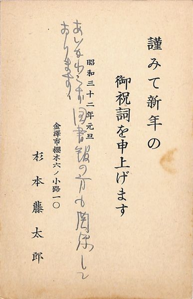 杉本藤太郎葉書(印刷・ペン/年賀)