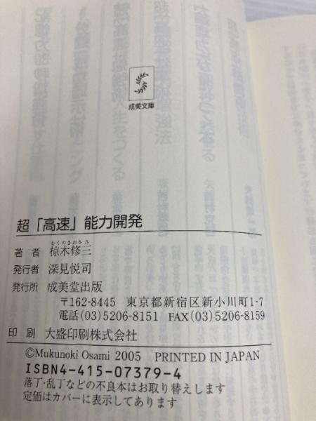 超「高速」能力開発: 記憶、集中、発想…いつも「進化している人」の習慣 (成美文庫 む- 4-4) 成美堂出版 椋木 修三