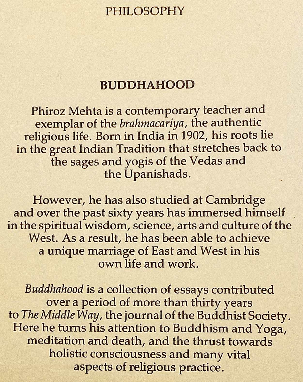 インド出身の宗教思想家・講演者 Phiroz Mehta による随想・講演録を集成した一冊。