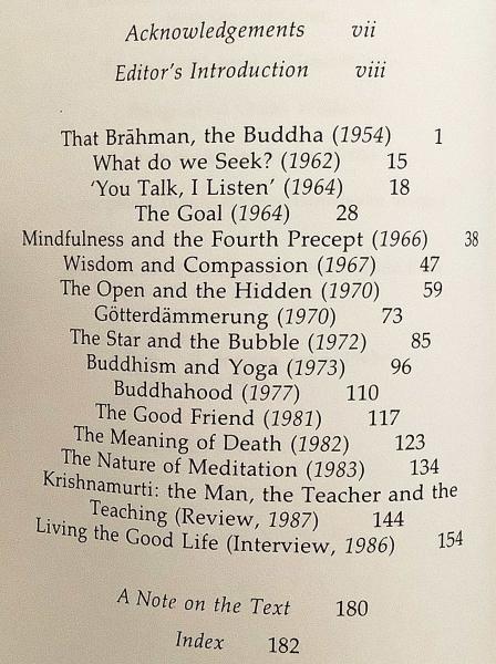 『The Middle Way』に発表された論考を中心に、仏教とヨーガ、瞑想、死、倫理、そして「仏陀性」という覚りの在り方を多角的に考察する。