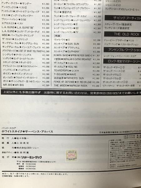 11 (BS) ホワイト・スネイク/サーペンス・アルバス (バンドスコア) リットーミュージック ホワイトスネイク