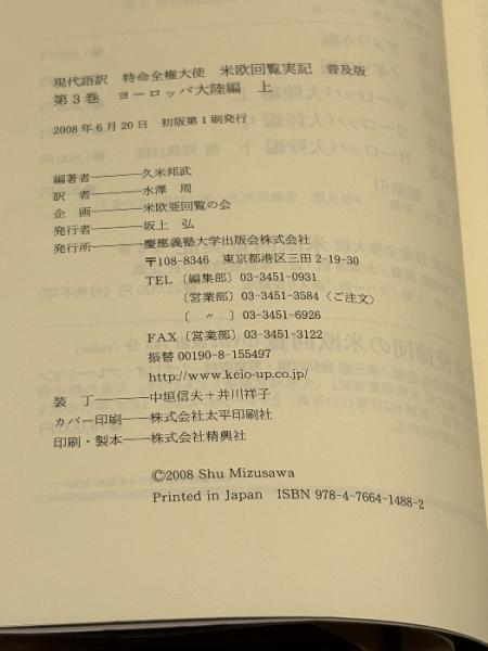 特命全権大使米欧回覧実記 3 普及版 ヨーロッパ大陸編 上―現代語訳 1871-1873 (3) 慶應義塾大学出版会 久米 邦武