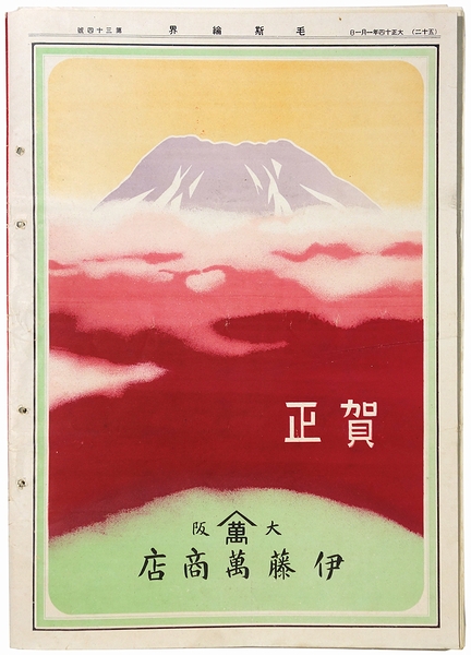 • 解説 支那輸出は好望、モスリンに就て御婦人の希望、為換関係とモスリン界、名流夫人の感想、モスリン加工の需要に就て、寺村老横談従語、他。新年広告多数掲載あり。