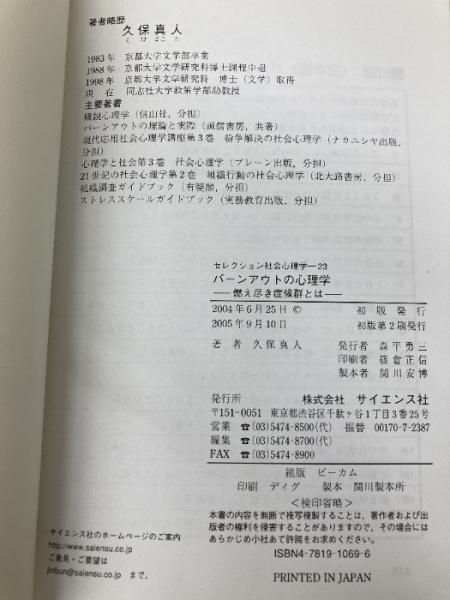 バ-ンアウトの心理学: 燃え尽き症候群とは (セレクション社会心理学 23) サイエンス社 久保 真人