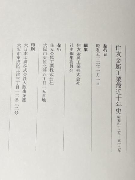 住友金属工業最近十年史―昭和四十二年~五十二年 創業八十周年記念 (1977年)※カバー無し