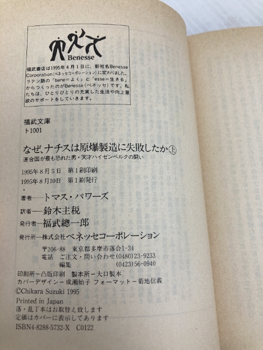 なぜ、ナチスは原爆製造に失敗したか 上: 連合国が最も恐れた男・天才ハイゼンベルクの闘い (福武文庫 ト 1001) ベネッセコーポレーション トマス パワーズ