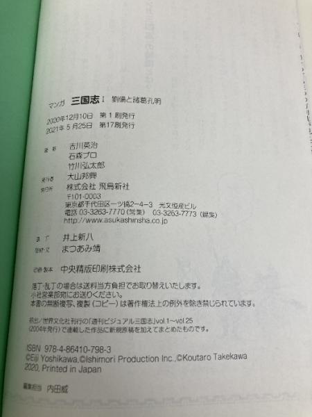 【※カバー無し】マンガ 三国志 I 劉備と諸葛孔明 飛鳥新社 吉川 英治
