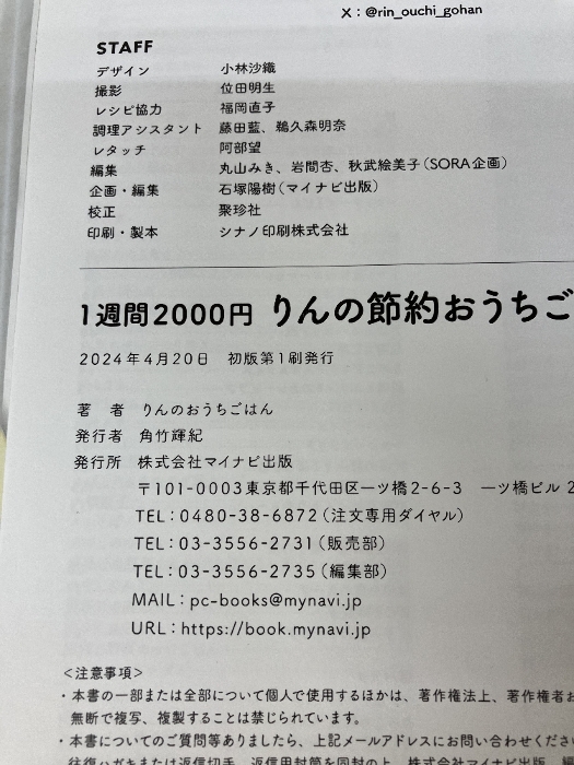 【※イタミ有り】1週間2000円 りんの節約おうちごはん マイナビ出版 りんのおうちごはん