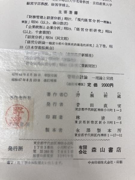 管理会計論―理論と実践 (1972年) 森山書店 野瀬 新蔵