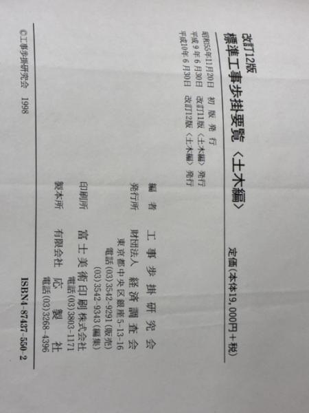 ※カバー無し 標準工事歩掛要覧 土木編 改訂12版 経済調査会 工事歩掛研究会