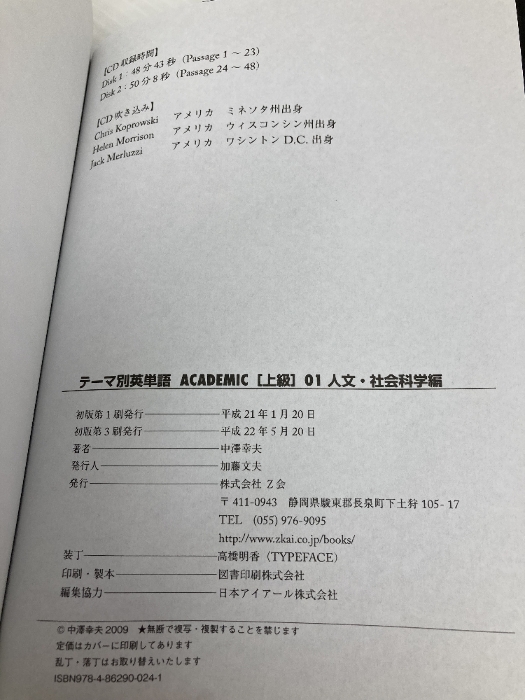 【※CD欠品】テーマ別英単語 ACADEMIC [上級] 01 人文・社会科学編 Z会 中澤 幸夫