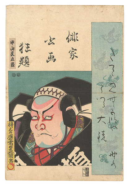 • 解説 Woodblock Print大判1枚摺良 トリミング 中折レ・切レ補修 少ヤケ 汚レ(顔を含む) 少傷ミ 役者名シール貼付 一部台紙貼付 瀬野尾太郎兼康/中山文五郎