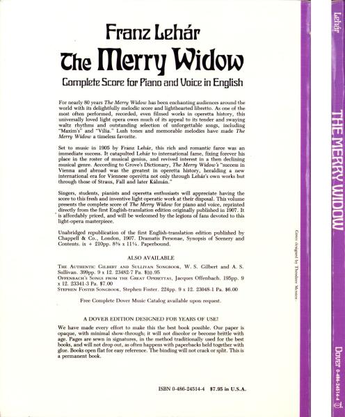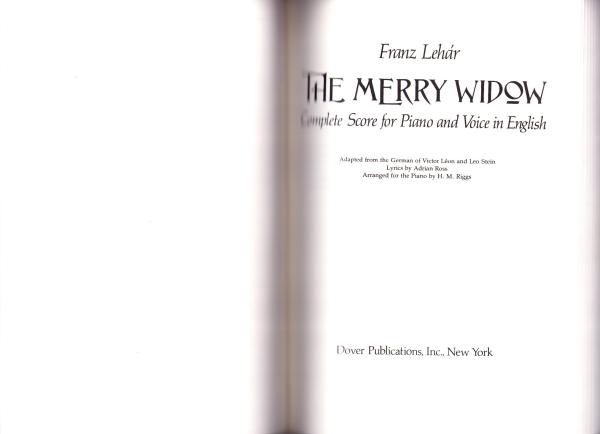 (楽譜・原書)The Merry Widow -Complete Score for Piano and Voice in English-(陽気な未亡人 -ピアノと声楽のための全曲スコア 英語版-)