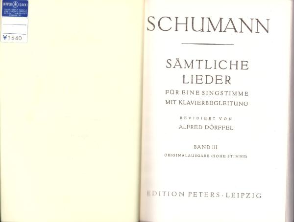 (楽譜・原書)SCHUMANN LIEDER BandⅢ -Hohe Stimme-(シューマン歌曲集Ⅲ -高声用-)