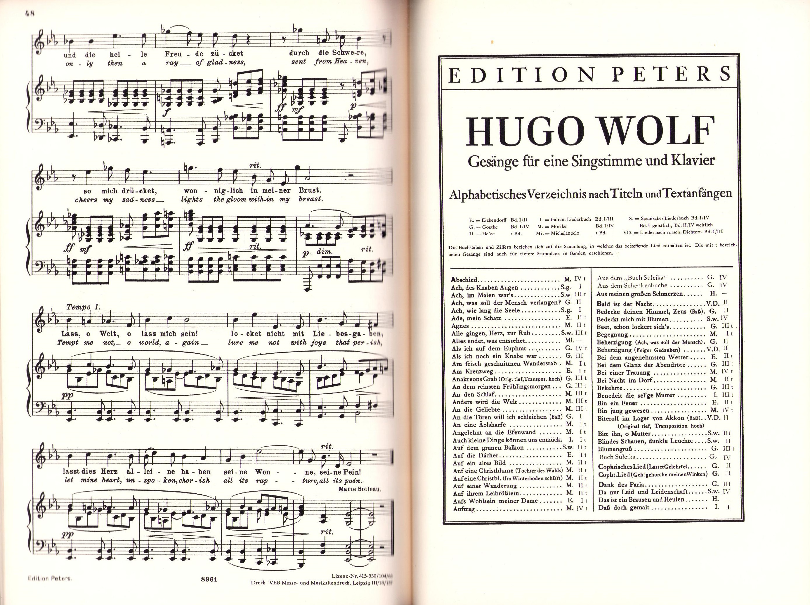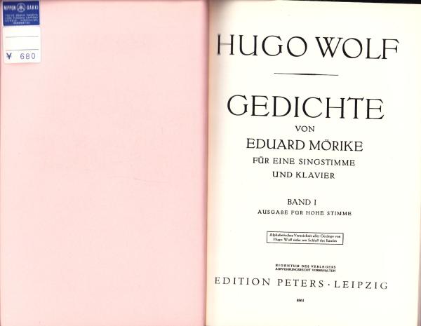 (楽譜・原書)WOLF BandⅠ -Morike=Lieder- (ヴォルフⅠ -メーリケ歌曲-)