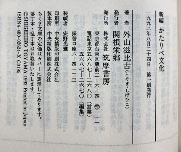 新編かたりべ文化 (ちくま文庫 と 1-2) 筑摩書房 外山 滋比古