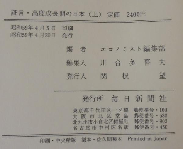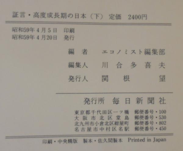 証言・高度成長期の日本 上下巻2冊