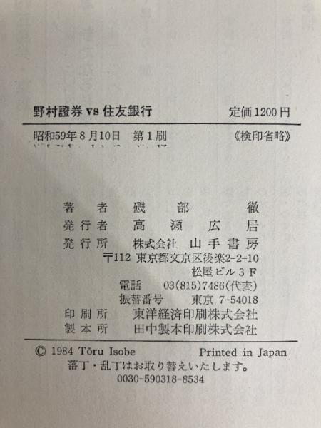 野村証券vs.住友銀行―証券と銀行、熾烈なる金融戦争 (1984年) 山手書房 磯部 徹