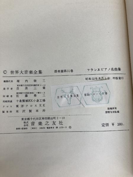 世界大音楽全集〈〔第1〕 第31巻〉器楽篇 フランスピアノ名曲集 (1957年) 音楽之友社 堀内 敬三