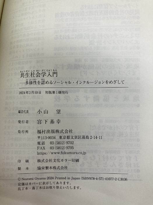 共生社会学入門 多様性を認めるソーシャル・インクルージョンをめざして 福村出版 小山 望