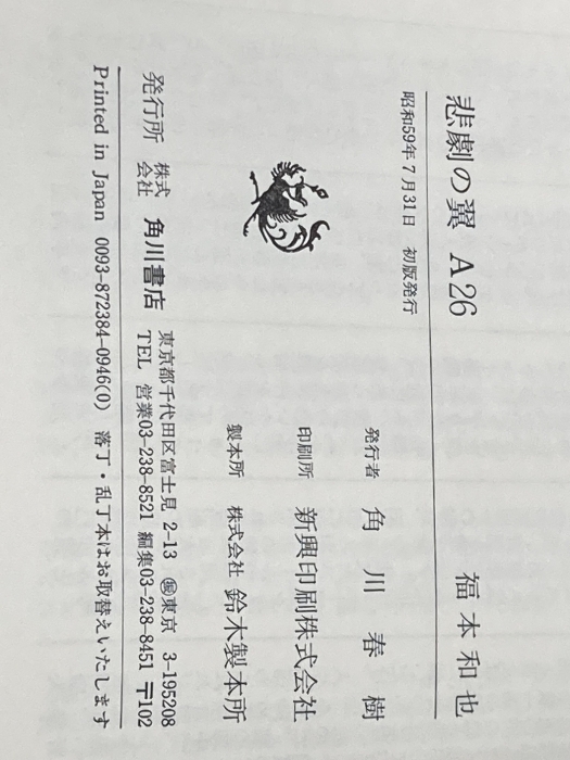 悲劇の翼A26 (1984年) 角川書店 福本 和也