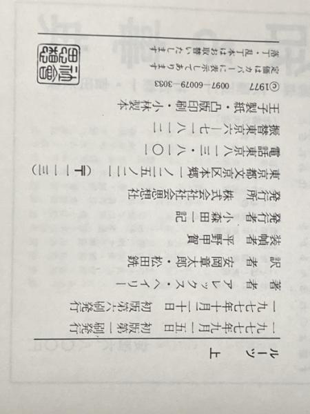 ※イタミ有 ルーツ 上下巻セット 社会思想社 アレックス・ヘイリー