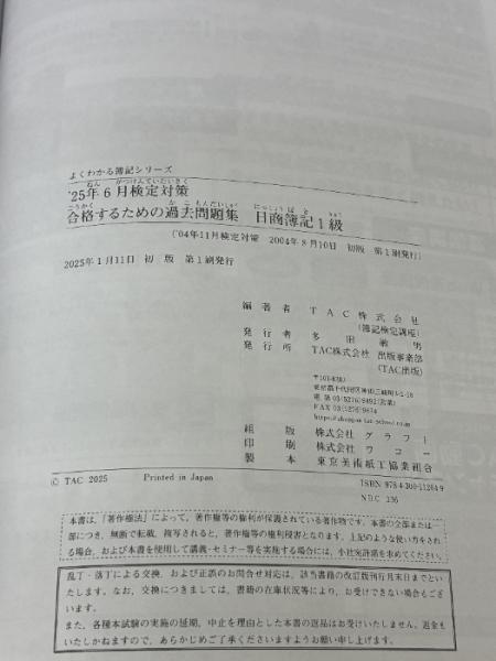 【※難あり】合格するための過去問題集 日商簿記1級 '25年6月検定対策 [第149回~第168回 全14回収載](TAC出版)