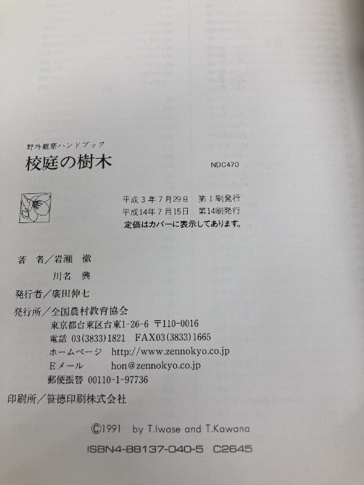 校庭の樹木 (野外観察ハンドブック) 全国農村教育協会 岩瀬 徹