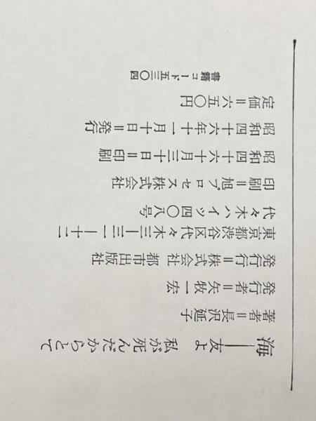 ※イタミ有 海―友よ私が死んだからとて 長沢延子遺稿集 (1970年) 都市出版社 長沢 延子