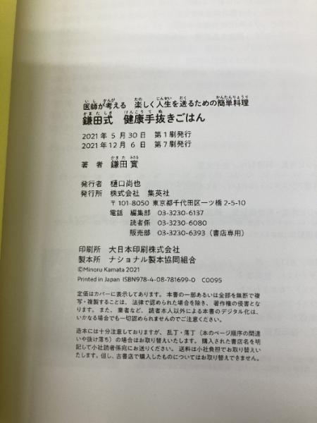 【※カバー無し】医師が考える 楽しく人生を送るための簡単料理 鎌田式 健康手抜きごはん 集英社 鎌田 實