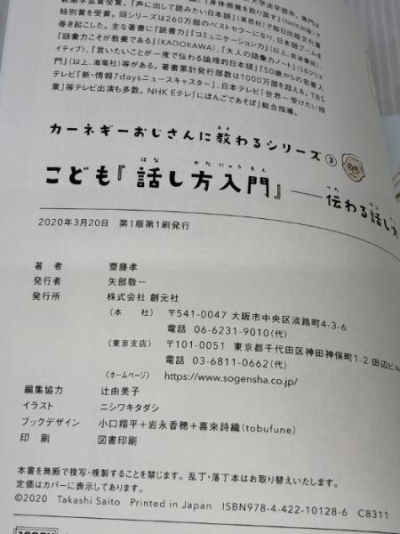 【※カバー無し】こども『話し方入門』: 伝わる話し方 (「カーネギーおじさんに教わる」シリーズ③) 創元社 齋藤 孝