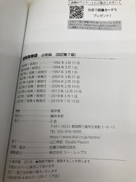 【※カバー無し】速読英単語 必修編[改訂第7版] (Z会文章の中で覚える大学受験英単語シリーズ) Z会 風早 寛