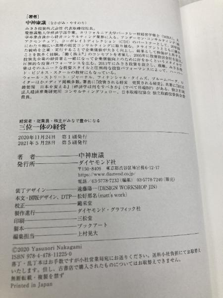 【※カバー無し】三位一体の経営 ダイヤモンド社 中神康議